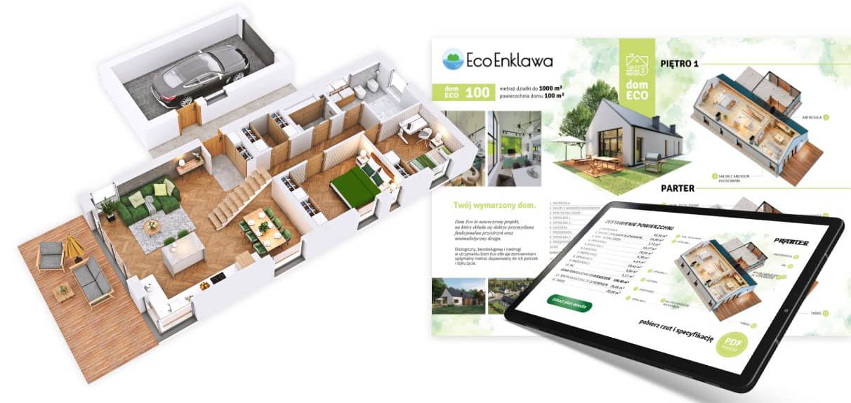 Przekroje 3D zyskują na popularności ze względu na atrakcyjną prezentację przyszłego wnętrza. Ułatwiają klientowi zwizualizowanie sobie przestrzeni, jej wykorzystania i wyglądu aranżacji. Jest to doskonały bodziec zakupowy, który przełamuje obiekcje klienta. Zwizualizowanie sobie wykończonego w pełni umeblowanego mieszkania wzbudza w kliencie pozytywne skojarzenia i ułatwia mu wyobrażenie sobie życia, jakie będzie w tym miejscu prowadził. Rzuty mieszkań 3D możemy prezentować w kliku najpopularniejszych stylach, a raz wykonane mogą być użyte do promocji lokalu na stronie internetowej, w mediach społecznościowych, czy jako ogłoszenie na dedykowanych portalach.